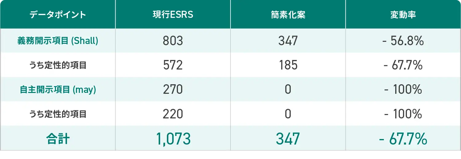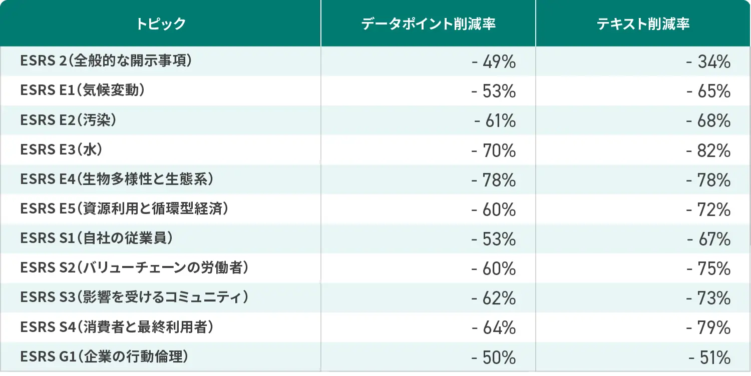 表1:ESRS簡素化案のデータポイント削減率 参考:EFRAG*7)全体