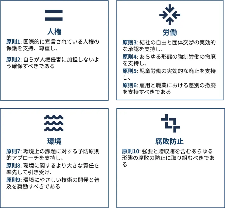 表1: 国連グローバル・コンパクトが署名企業に求める4分野10原則*3)