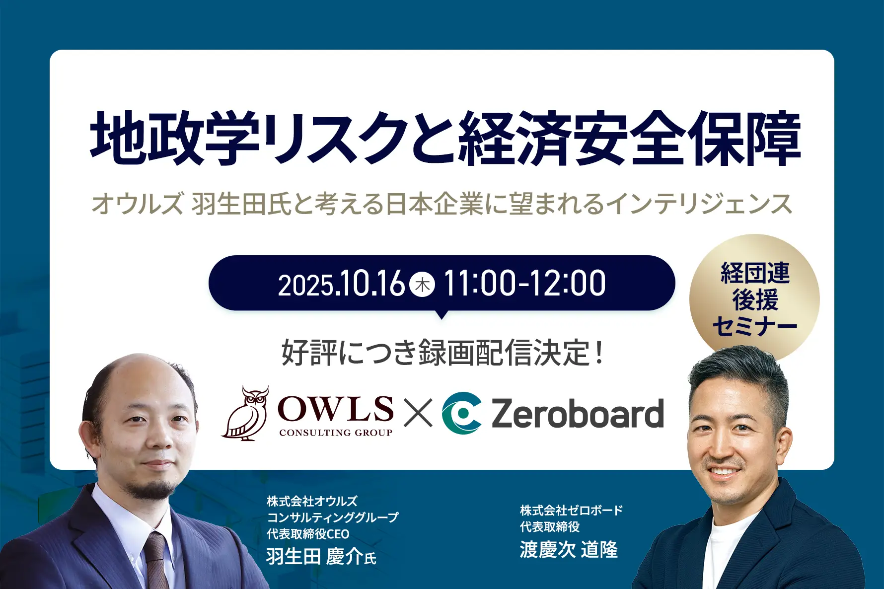 開催時間: 10.16 (木) 11:00 〜 10.16 (木) 12:00好評につき録画配信!【経団連後援】地政学リスクと経済安全保障 ~オウルズ羽生田氏と考える日本企業に望まれるインテリジェンス~
